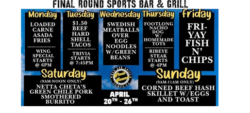 Great food, ice-cold drinks, and friendly service at Final Round Sports Bar and Grill.